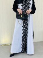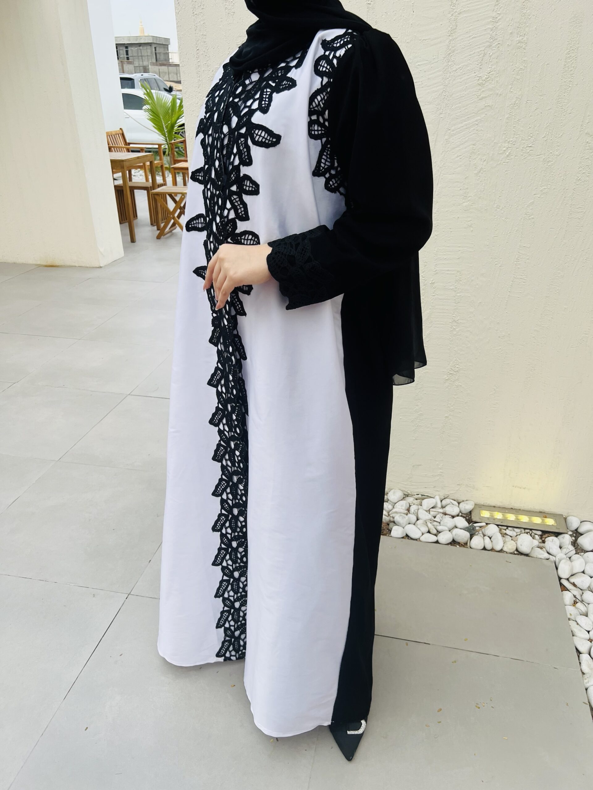 العباية بقماش بلون الأسود والأبيض الأبيض قماش تفتة خفيف قابل للتغييير. إلى قماش عادي يتغير اللون للأسود كامل حسب الطلب